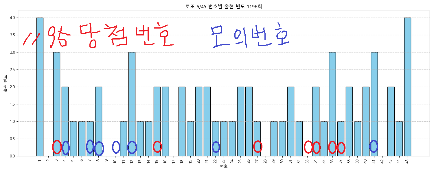 빈도 = [번호_빈도.get(i, 0) for i in 번호_범위]