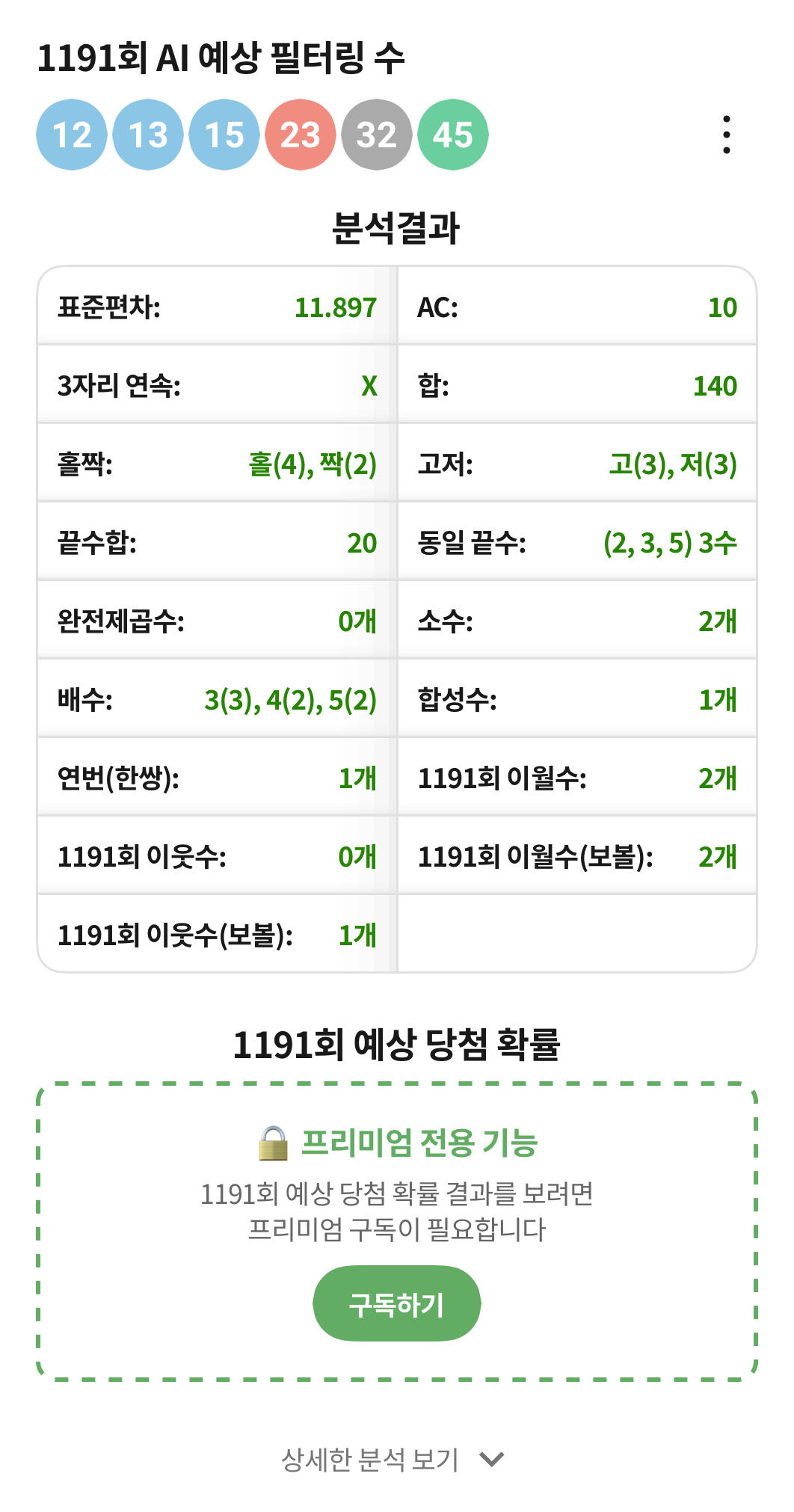 1191회 어플 AI예상 필터 1수