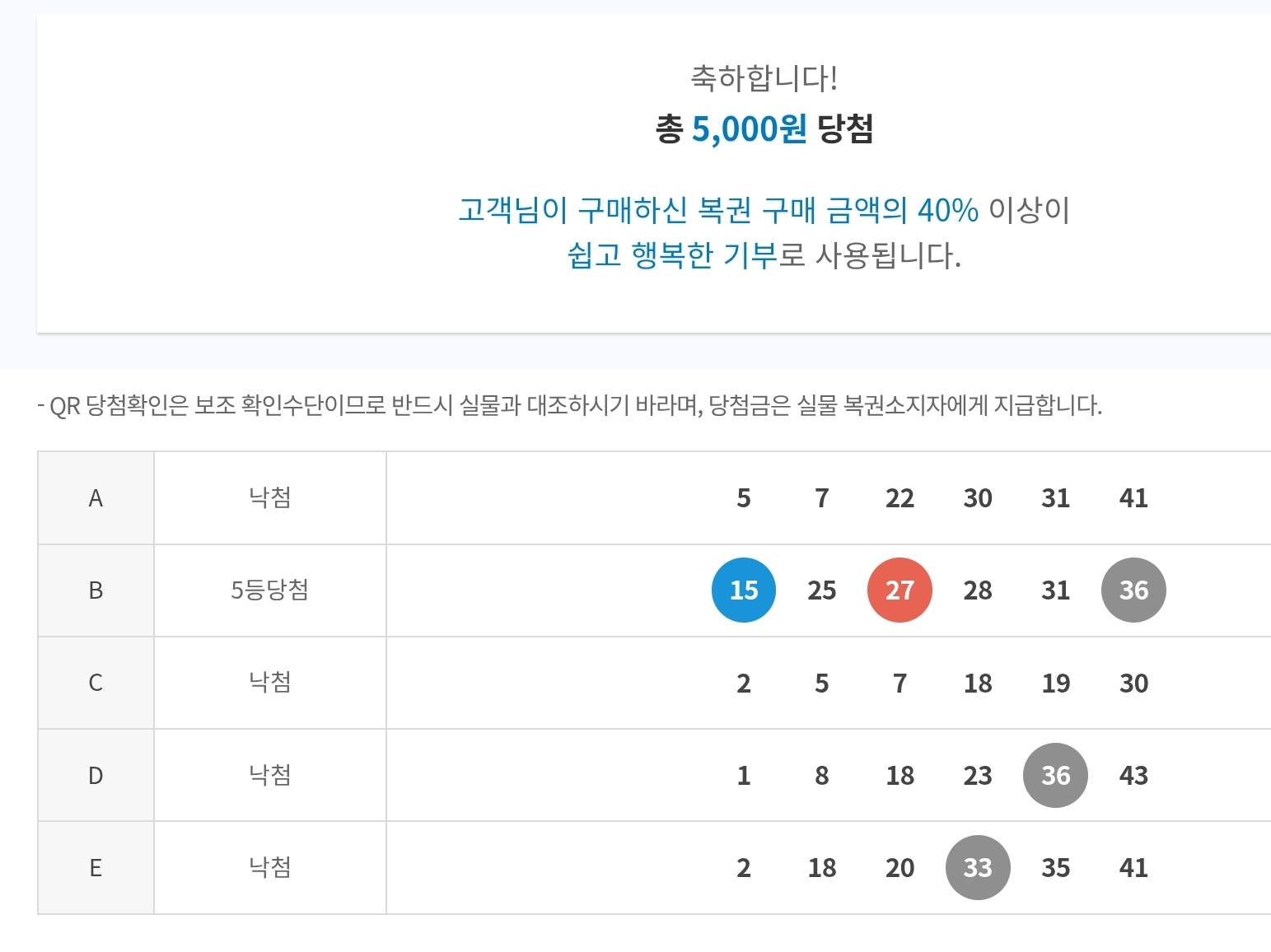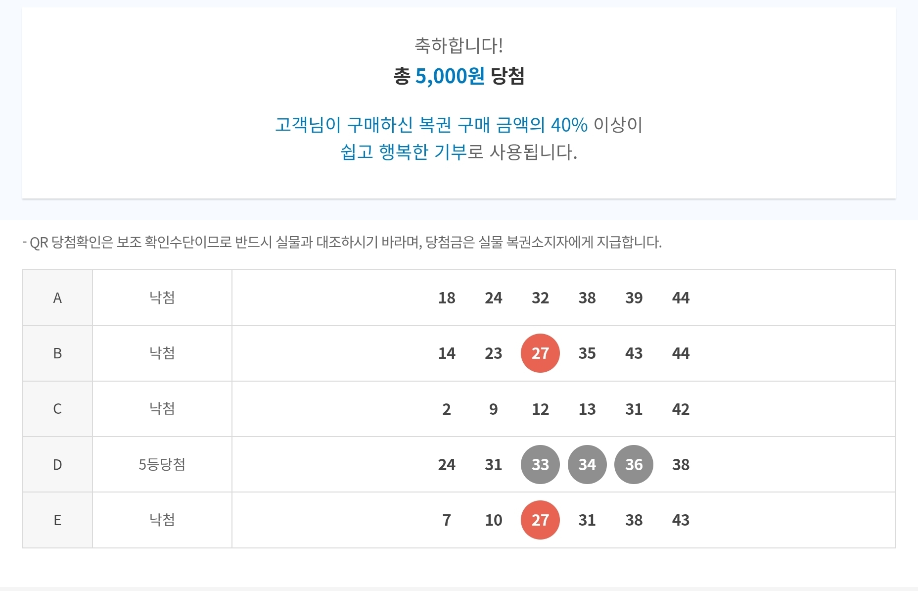 4,5등 | 5등 당첨 했네요