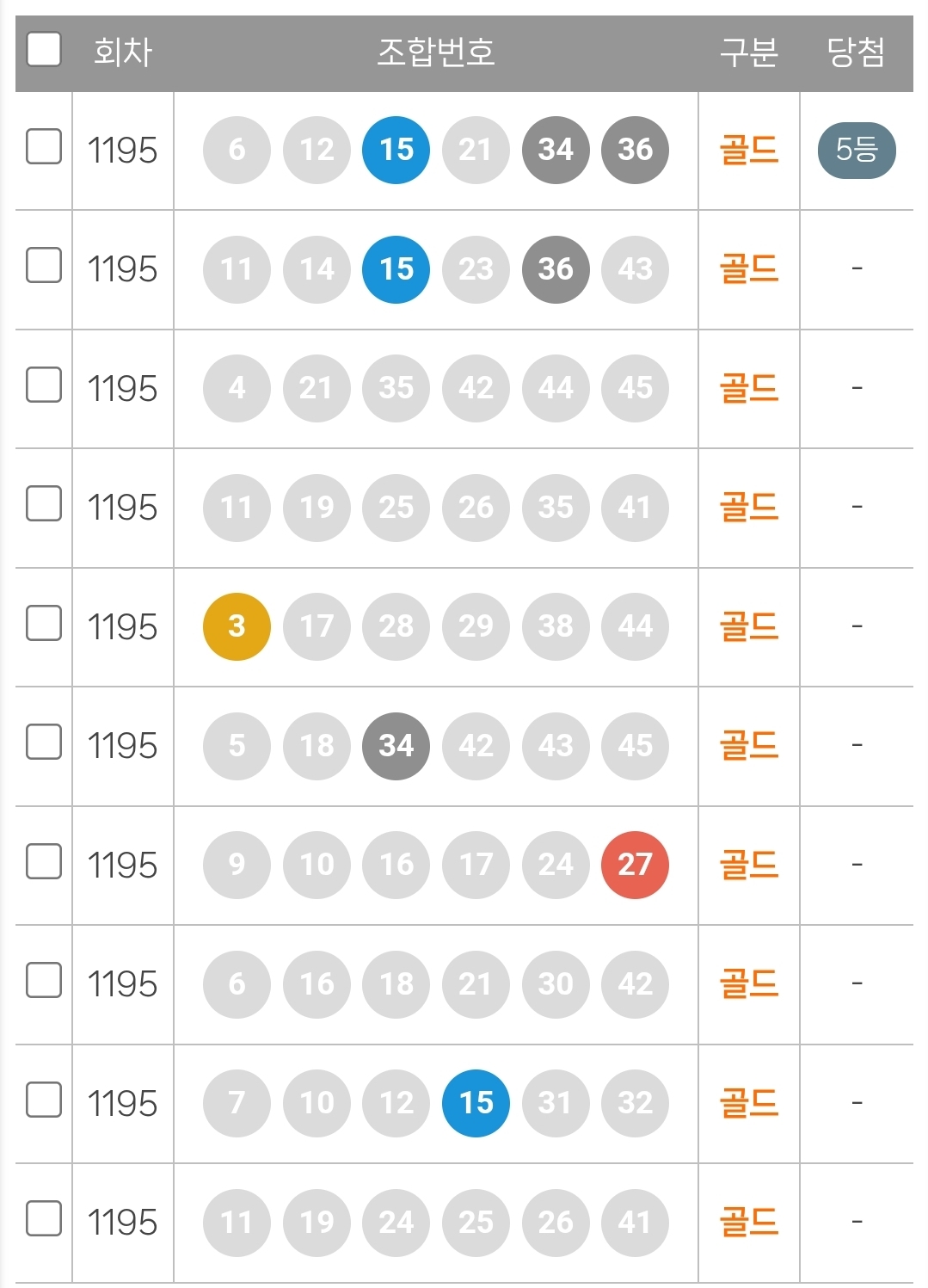 골드가입 첫주에 5등 1개 나왔네요. 앞으로 4등, 3등, 2등, 1등이 오는 그 날까지 잘부탁드려요!